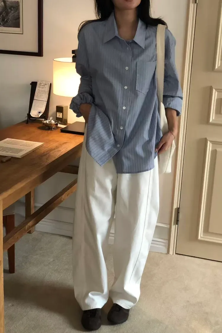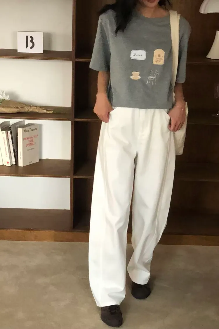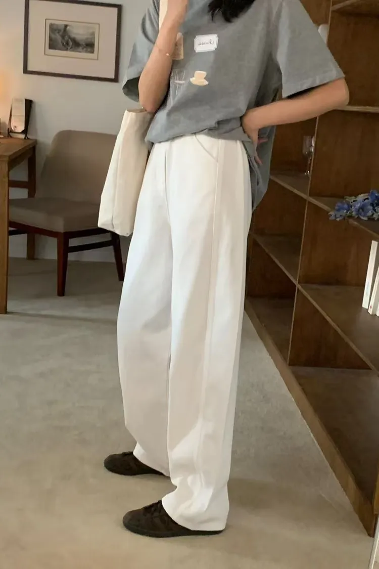 微寬鬆直筒白長褲