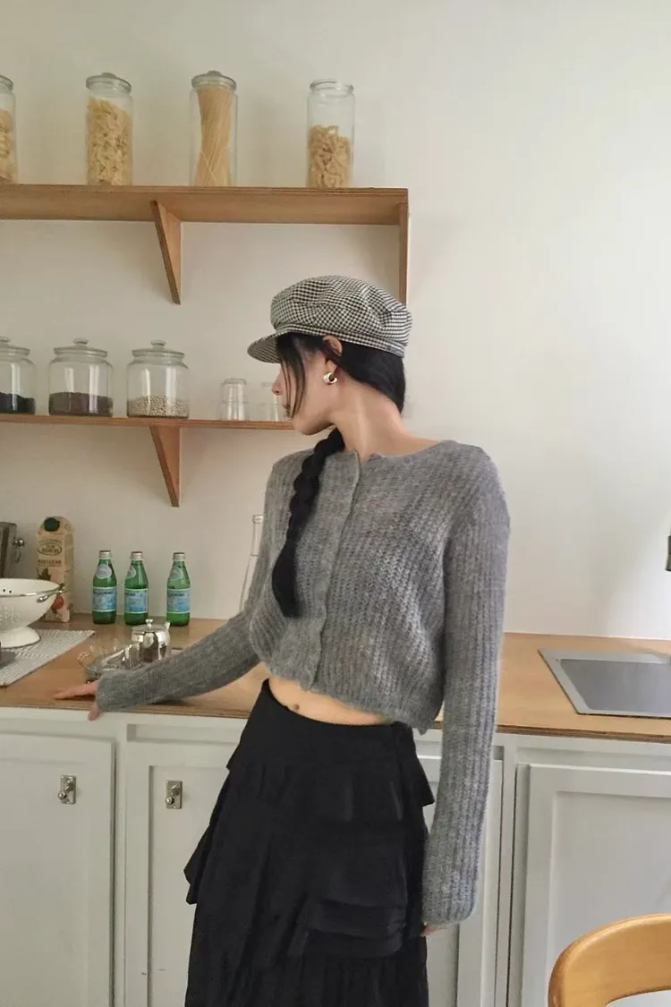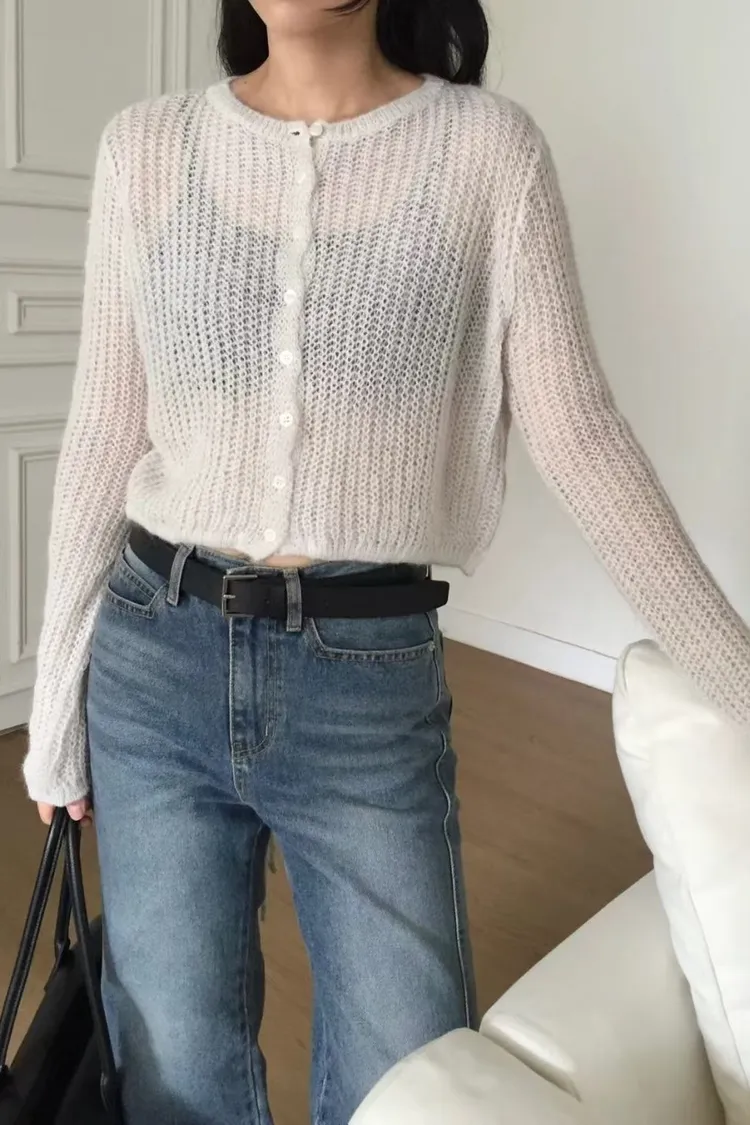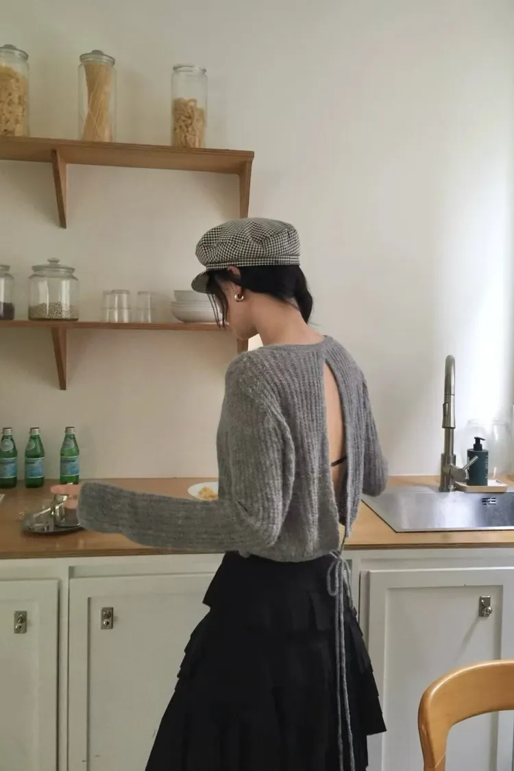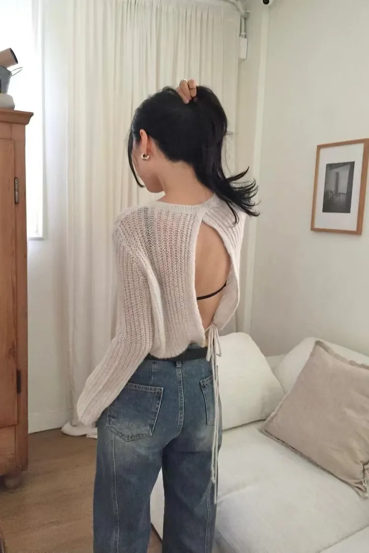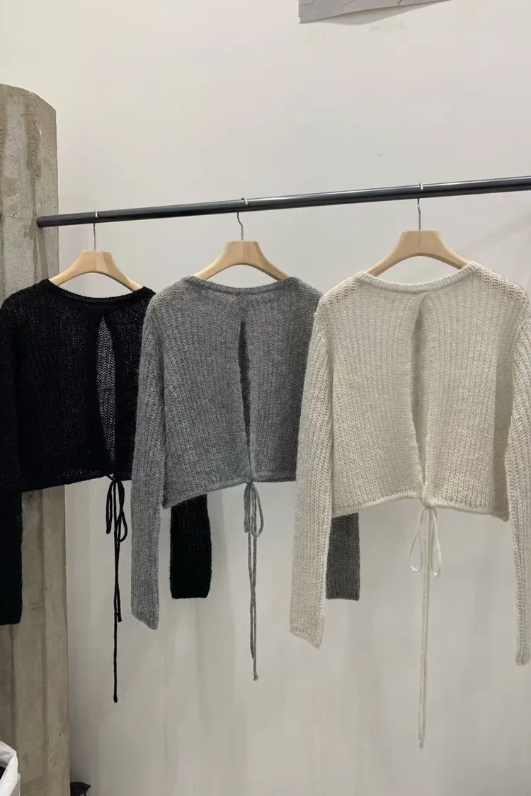 毛毛開扣露背造型上衣
