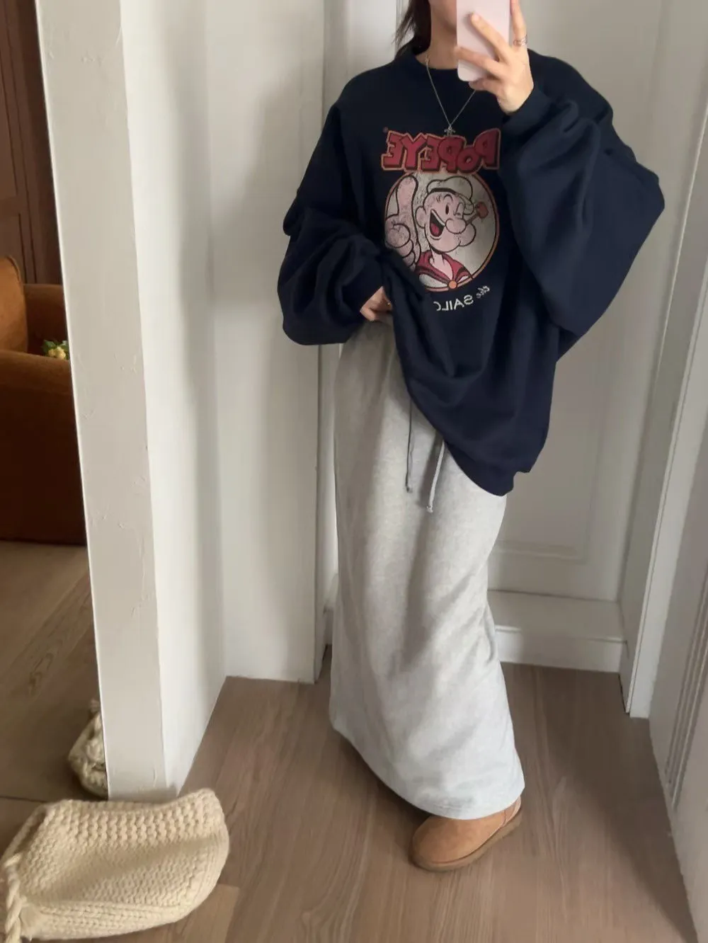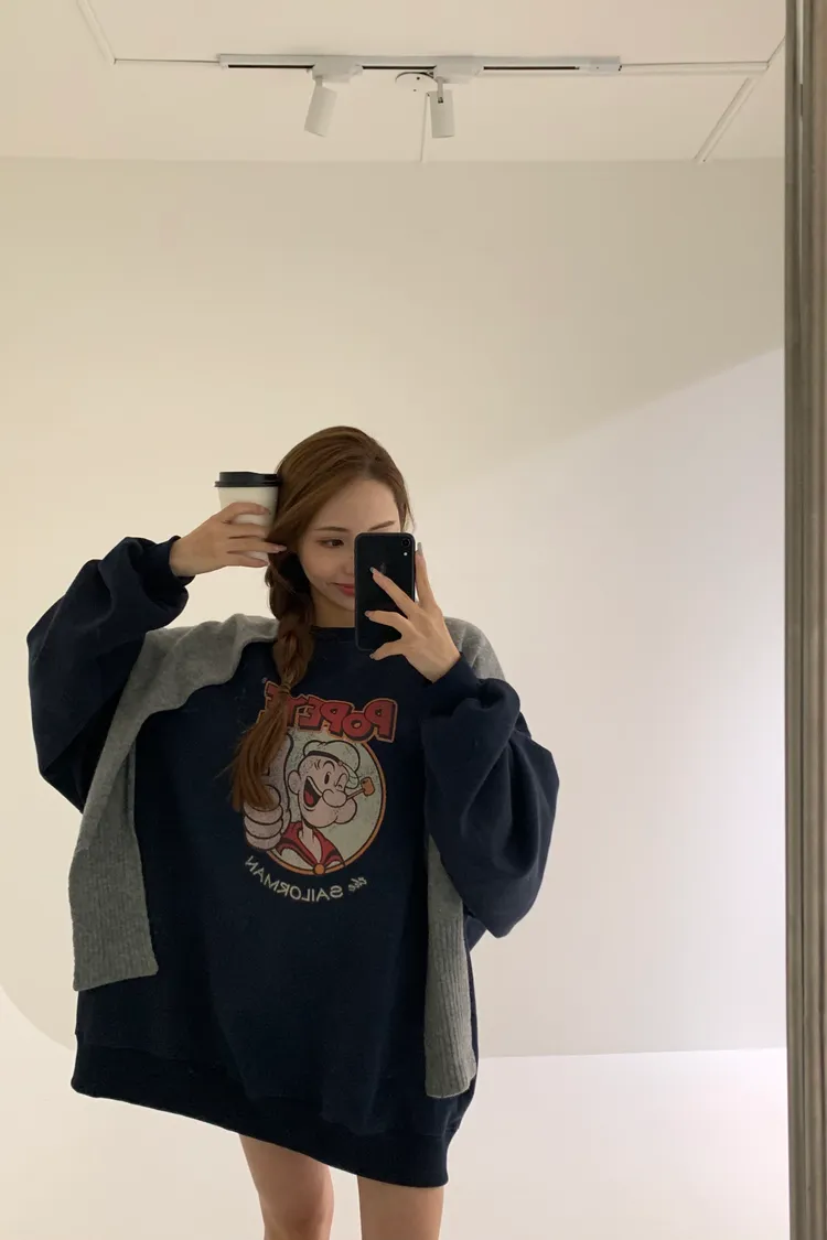 POPEYE中長板內刷毛大學Tee